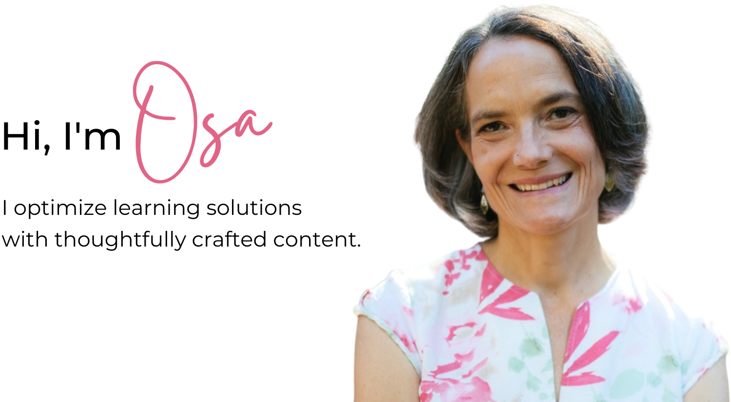 Osa brings meticulous attention to detail and a wise and empathic approach to learning and development in her curriculum design work. She routinely goes above and beyond expectations, cares deeply about superb quality in her L&D work, and is grounded, growth-oriented, and committed to excellence through refinements and constant improvement.